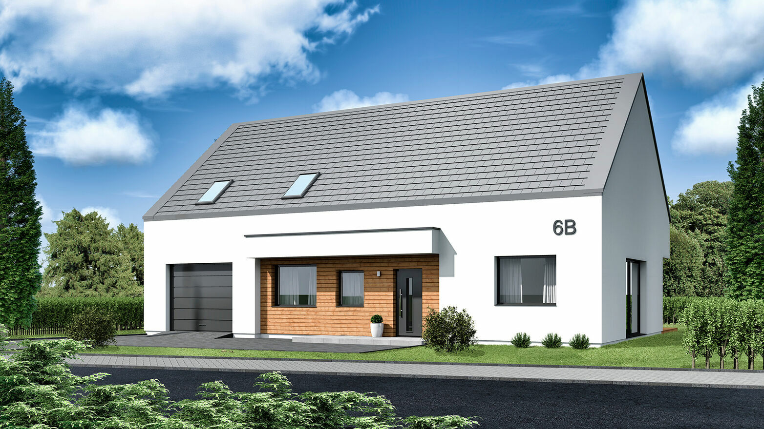 Dom typu "nowoczesna stodoła" dla osób, które cenią kubaturę i światło bardziej niż metry kwadratowe. Sercem domu jest salon z pustką do dachu (~6 m) i niewielką antresolą - przestrzeń robi wrażenie od progu.Od strony ogrodu jest cisza i zieleń, a taras wychodzi na południe, dzięki czemu strefa dzienna jest słoneczna przez większą część dnia. Wejście od północy od strony ulicy zapewnia wygodę codziennych dojazdów.